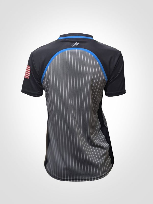 NCAA Women's Basketball V-Neck Officials Shirt. Bi-flex, Cool wicking, quick drying material. Sublimated design includes the American Flag on the left sleeve. Slim fit, runs on the smaller end.
